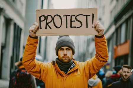 Voice of Dissent: Man Raising 'PROTEST!' Sign