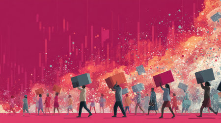 A person holds a red megaphone, leading a crowd in a passionate urban protest. The image conveys the spirit of activism and the call for change, showcasing unity in a public space.