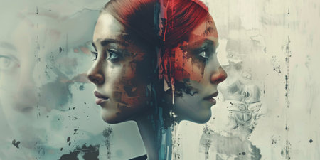 Identity struggle - altered self-perception in women mental health, highlighting issues of body image, psychological fragmentation, and the complexity of dual identity in self-identity challenges
