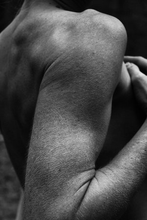 Partial close up of naked girl hugging herself