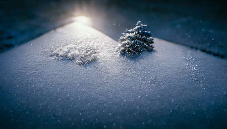 Winter snow background. Cozy winter nature scene with snow and sun flare. Abstract blurred background. Copy space, Selective focus, toned