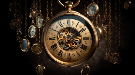 This captivating image showcases a vintage pocket watch with intricate detailing and Roman numerals, set against a shimmering gold background, perfect for evoking nostalgia.