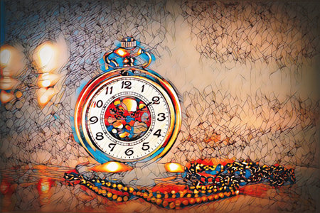 This image showcases a close-up of an antique gold pocket watch, highlighting intricate details and textures against a shimmering backdrop, perfect for vintage-themed projects.