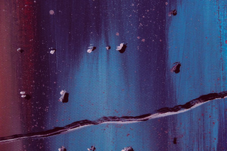 Close-up of a colorful and textured oil painting with vivid blue and red strokes.