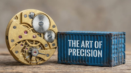A drop shipping store box clock logistic concept. drop shipping store box clock logistic gear mechanism container art of precision concept