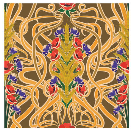Seamless pattern with wheat in art nouveau style, vector illustration