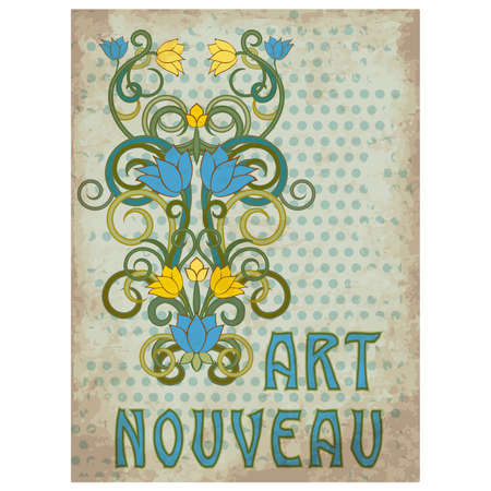 Old floral ornate in art nouveau style, greeting card, vector illustration