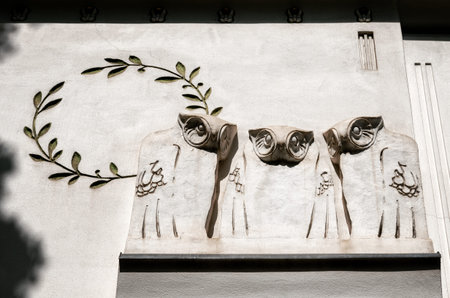 VIENNA, AUSTRIA September 7, 2018: Decorative relief on the French Embassy building located at Schwarzenbergplatz.