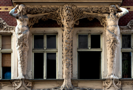 Decor of building in Art Nouveau style (Jugendstil) in Riga, Latvia.