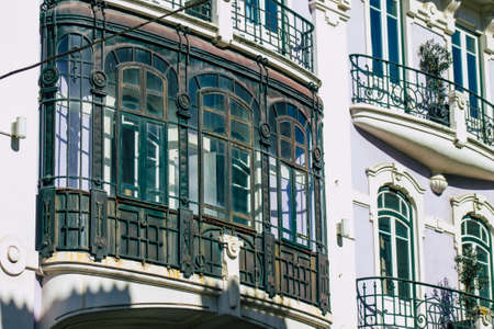 Lisbon Portugal july 25, 2020 View of classic facade of ancient historical buildings in the downtown area of Lisbon, the hilly coastal capital city of Portugal and one of the oldest cities in Europe