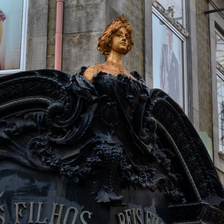 Low angle view of sculpture at store, Santo Ildefonso, Porto, Northern Portugal, Portugal