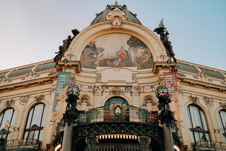 Prague, Czech - February 2023. Municipal House Hall Facade