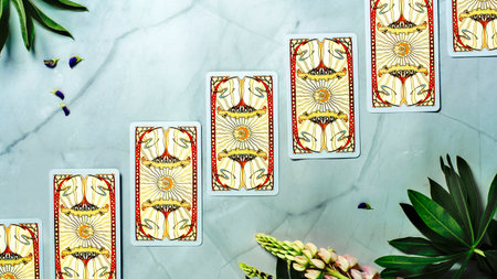 Ukraine Dnipro 08/25/2021 - Divination tarot cards on the table as a background, divination by tarot cards, magic and witchcraft