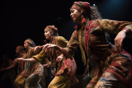 A multicultural choir singing a traditional song, dressed in cultural attire, emphasizing unity and diversity through the power of music.