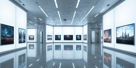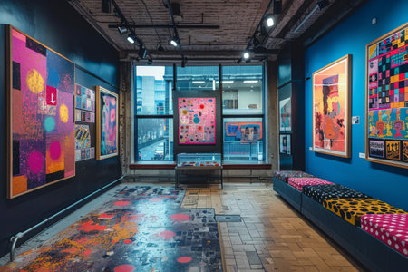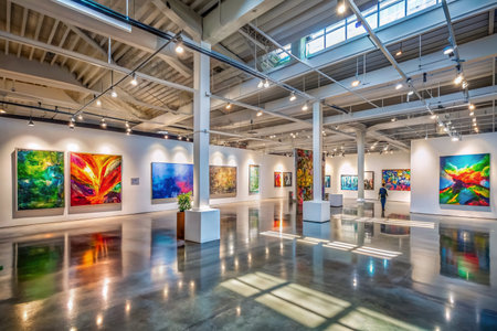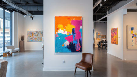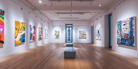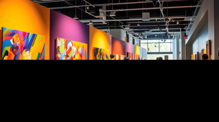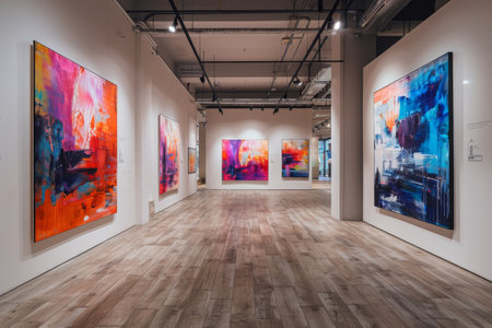 Modern art gallery showcasing vibrant artwork on display, creating an inspiring and immersive viewing experience for visitors.