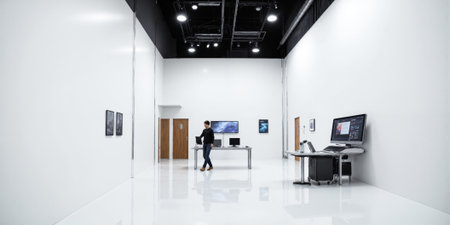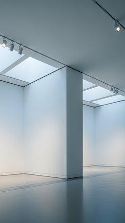 empty exhibition hall, modern art gallery interior with white walls and floor