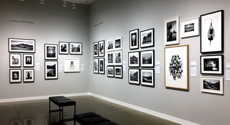 A Captivating Blend of Generations: An Unforgettable Encounter at the Black and White Photography Exhibition in a Modern Art Gallery