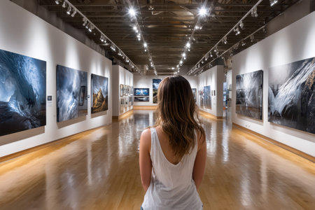 shot of a woman walking around an art gallery to admire the artwork, created with generative ai
