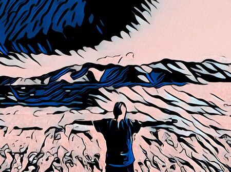 Male caucasian teen with distorted digital effect and fragmented overlay.