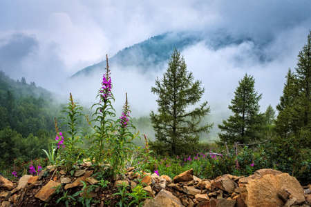 Mountain landscape. Foggy weather high in the mountains in summer