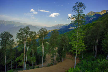 Peaks of mountains and forest. Abkhazia.