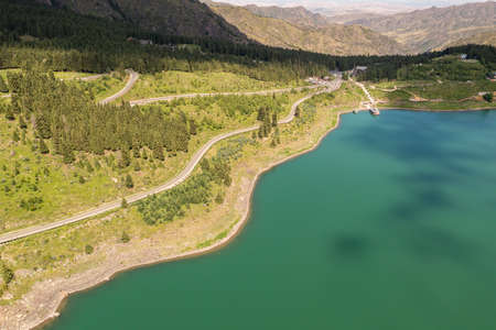 Water reservoir landscape with mountains, Dimcay, Alanya, Antalya, Turkey. Vacation holiday recreation, travel concept