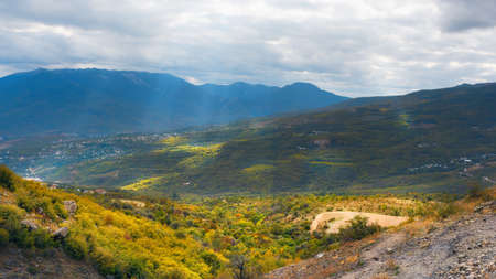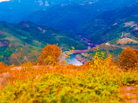 Autumn colorful landscape in black sea Karadeniz highlands on a beautiful autumn sunset in Maden village, Savsat, Artvin, Turkey