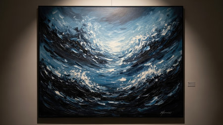 A vibrant art gallery showcasing stunning abstract paintings with a warm and inviting atmosphere. The blurred background creates a captivating depth effect.