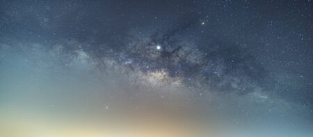 Beautiful panorama view universe space of colorful milky way galaxy with stars on a night sky, Space background, Long exposure photograph with grain or noise - Image