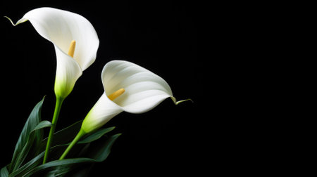 white calla lily isolated on black background with copy space.
