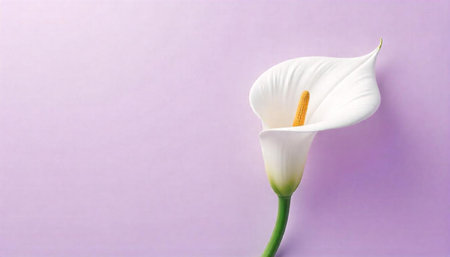 Elegant white calla lily on soft purple background minimalism