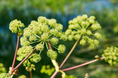 Norwegian angelica, Angelica archangelica, biennial plant from the family Apiaceae, a subspecies of which is cultivated for its sweetly scented edible stems and roots
