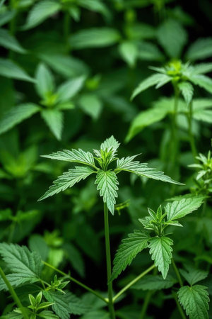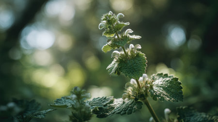 Morning in the nettle forest. Shallow depth of field.