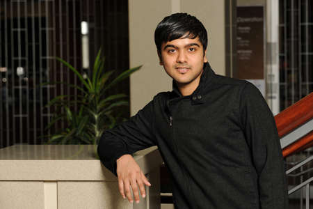 Handsome Indian man posing in an urban context. Street fashion and style.