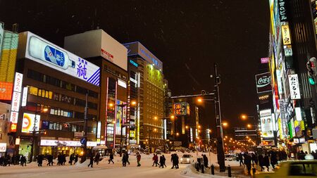 SAPPORO, JAPAN-March 1 , 2018 : Blizzard weather in downtown of Sapporo, Japan