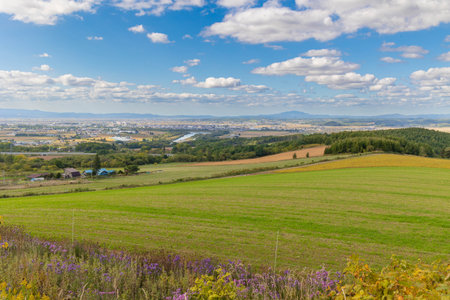 Tropical beautiful cityscape view from Sapporo TV Tower of Sapporo City in summer seasonal.