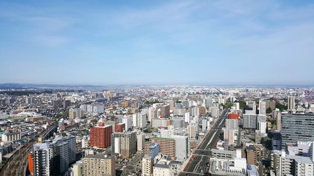 Panorama aerial skyline view of Sapporo from okurayama ski jump stadium