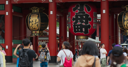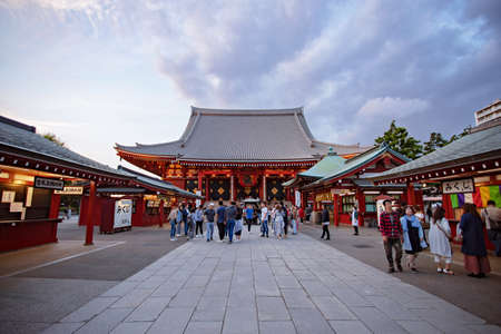 TOKYO, JAPAN - June 22, 2018 : Sensoji temple at Asakusa neighborhood, tourists are very happy to pay homage to blessing. This area has many shops & shopping center. One of Tokyo's must-see places to visit