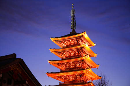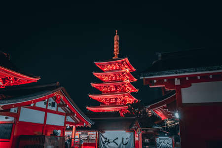 Five storey pagoda at senso-ji temple, Asakusa, Tokyo at night.