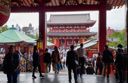 Sensoji Temple, Tokyo, Japan A Daytime View of the Historic Buddhist temple with Tourists