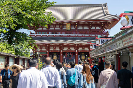 Tokyo, Japan- 18 May, 2024: Unidentified people visit Sensoji temple in Tokyo. Sensoji temple is the most famous attraction in Asakusa.