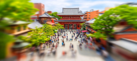 TOKYO, JAPAN - April 23,2017: High view of Asakusa Sensoji Temple and Nakamise road in Asakusa, Tokyo.