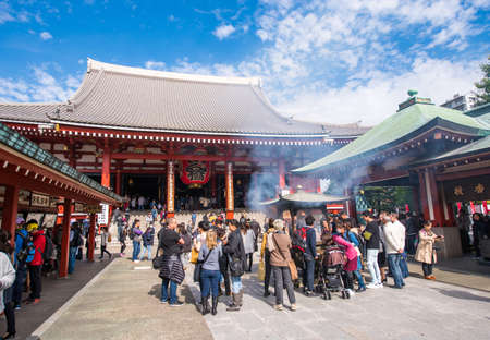 Tokyo, Japan - April 9, 2016: Tourist visit Sensoji, also known as Asakusa Kannon Temple is a Buddhist temple located in Asakusa. It is one of Tokyo's most colorful and popular.