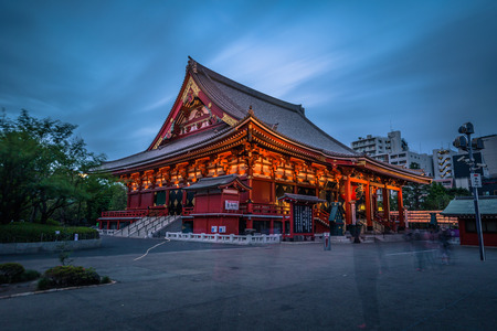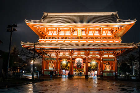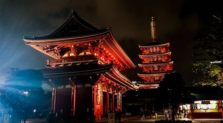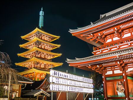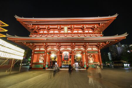 Tokyo - May 20, 2019: Night shot of the Sensoji temple in Asakusa, Tokyo, Japan