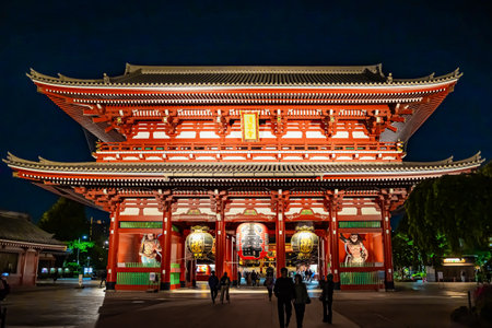 Asakusa, Tokyo, Japan - November 03, 2018 - Sensoji is an ancient Buddhist temple at night in Asakusa, Tokyo, Japan.