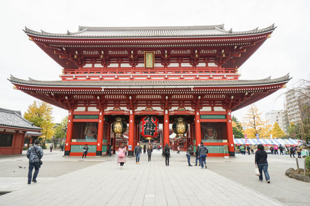 Tokyo, Japan - Nov 30, 2015 : Visitors walk through Sensoji Temple in Tokyo, Japan. It is the most famous buddhist temple in Asakusa district, one of the main tourist attraction in Tokyo, Japan.