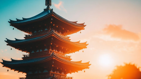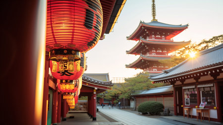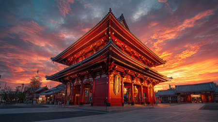 Historic Japanese Temple at Sunset Sens-ji, Tokyo s Ancient Landmark Bathed in Golden Light