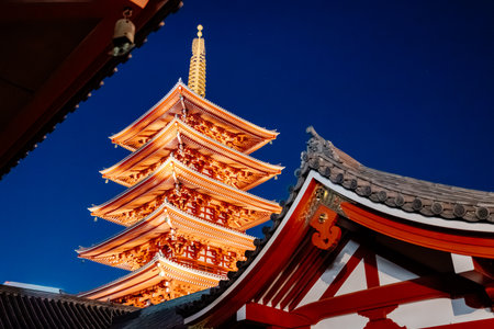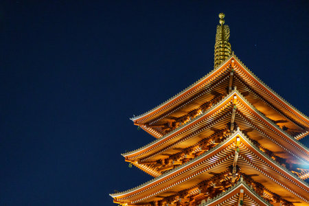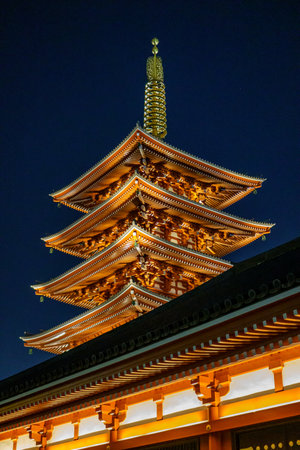 Five story pagoda at night, Asakusa, Tokyo, Japan.
