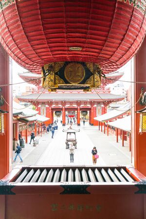 TOKYO - MAY 22, 2016: Tourists visit Senso-ji Temple in Tokyo, Japan. The Senso-ji Buddhist Temple is the symbol of Asakusa and one of the most famous temples of Japan.
