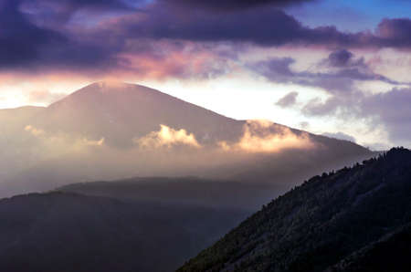Mountain top at the sunset. Artistic photo of Mount Hoverla the highest mountain of Ukraine